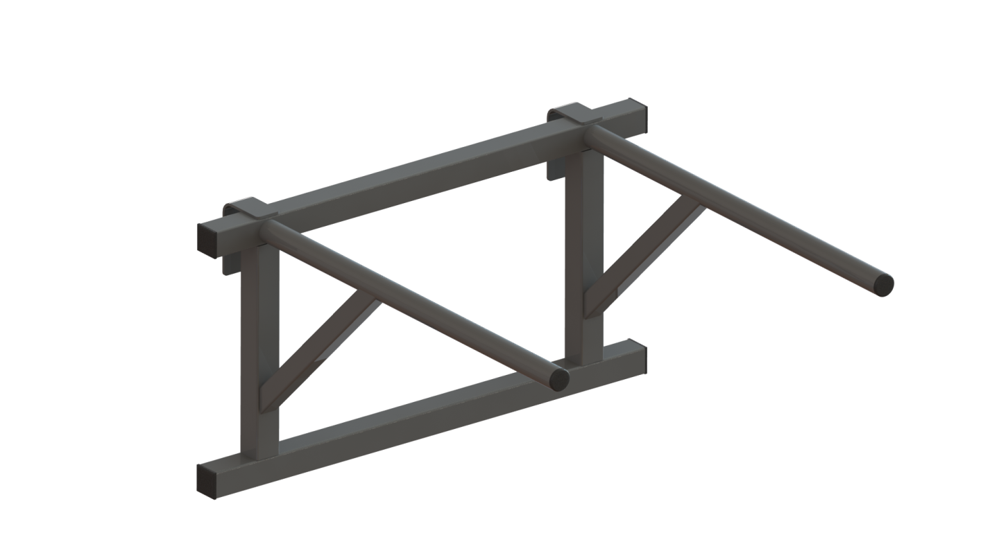 - Для крепления к шведской стенке стене имеется 2 крюка изготовленных из г/к полосы 40х4мм и жестко приваренных к основной раме конструкции.