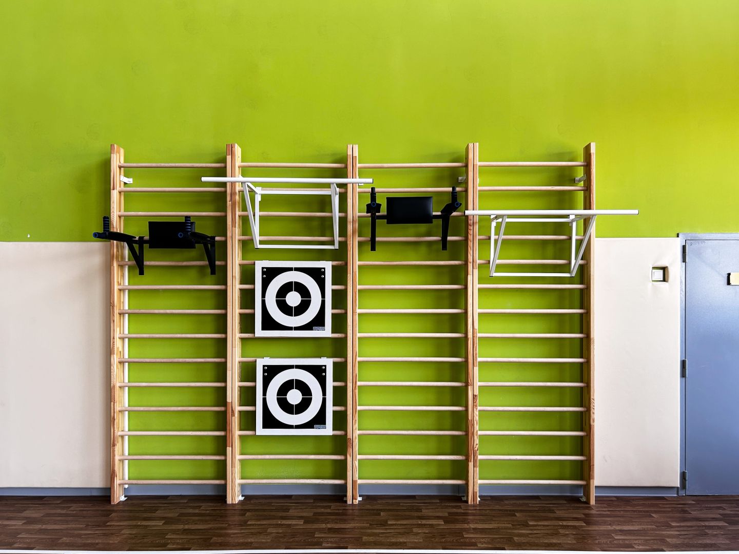 - Навешивается на гимнастическую стенку с диаметром перекладин до 40мм.