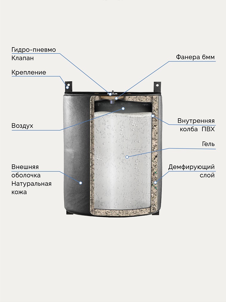 • Конструкция подушки позволяет наилучшим образом отрабатывать технику ударов, наращивать мощность и силу.