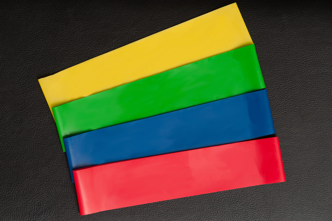 | 4 фитнес резинки: желтая - 4 кг (легкое сопротивление), зеленая - 6 кг (среднее), синяя - 8 кг (тяжелое), красная - 12 кг (очень тяжелое) |