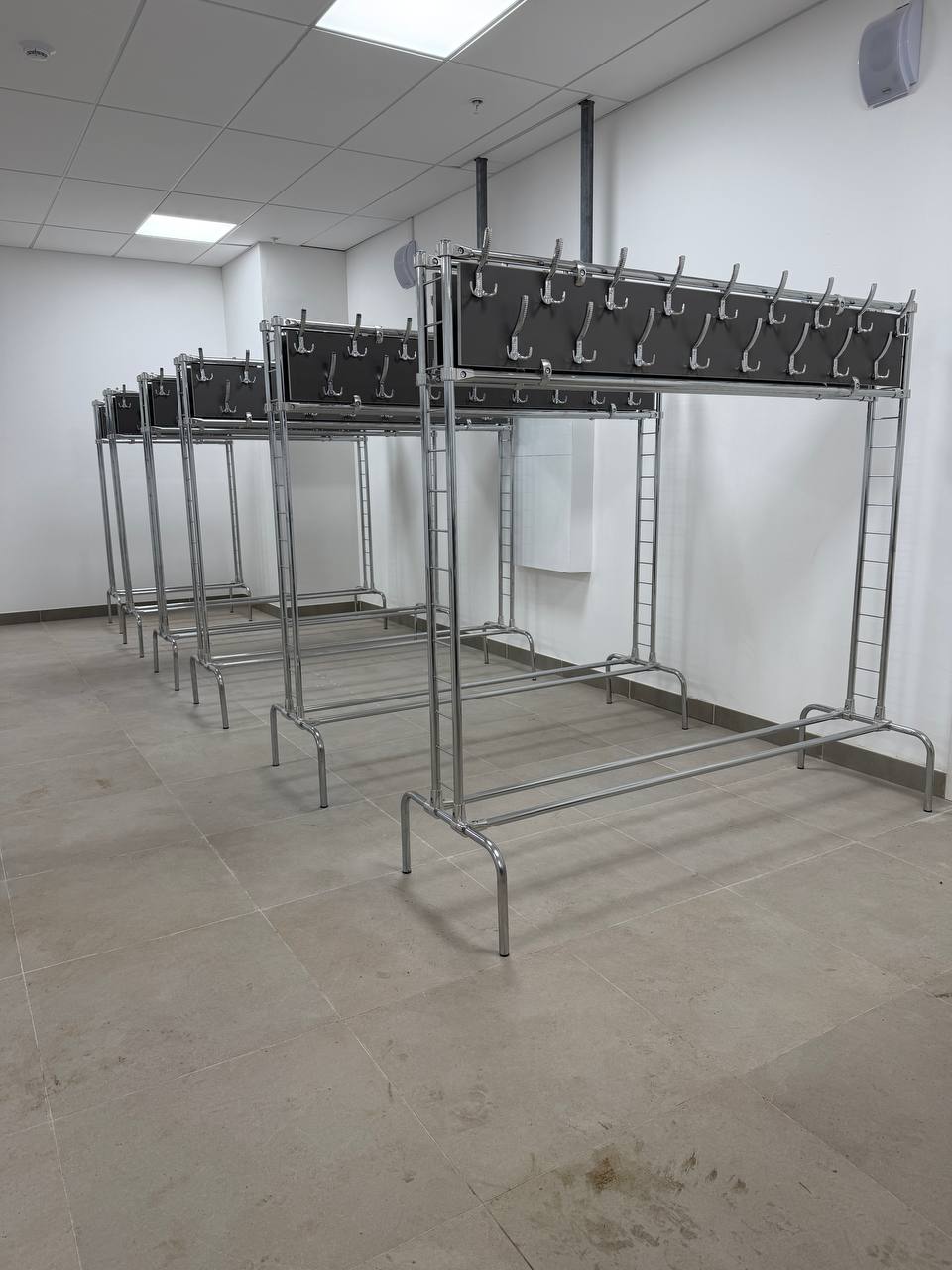Вешалка гардеробная двухсторонняя, хромированная L=1800 мм (34 крючка, HPL-пластик) СТД-3
