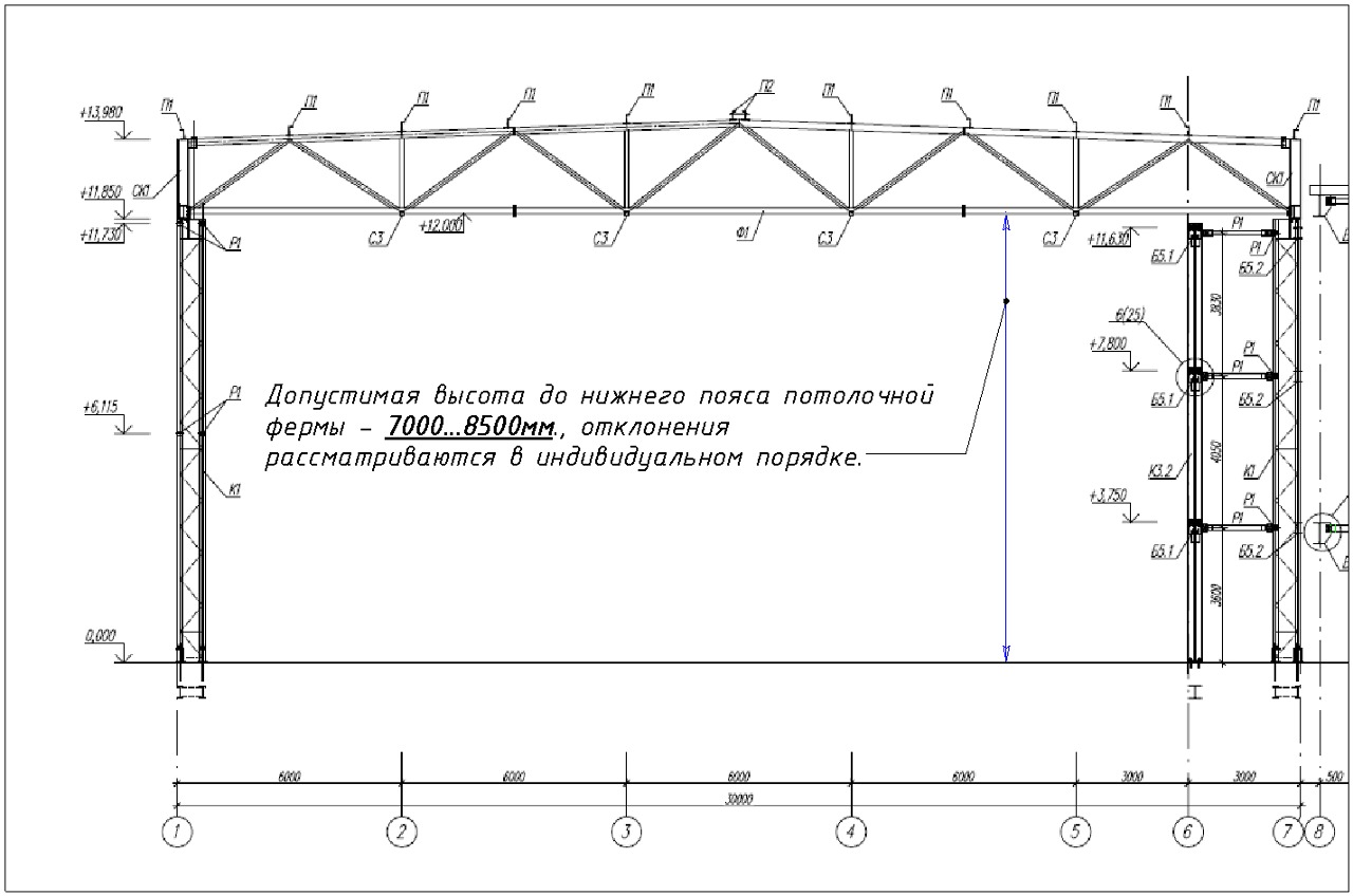 нижний пояс фермы до 8,5 м |