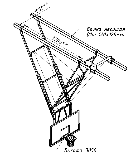 - Высота установки кольца – 3050мм (от уровня пола). Рамки и задний подрамник представляют собой сварные конструкции.