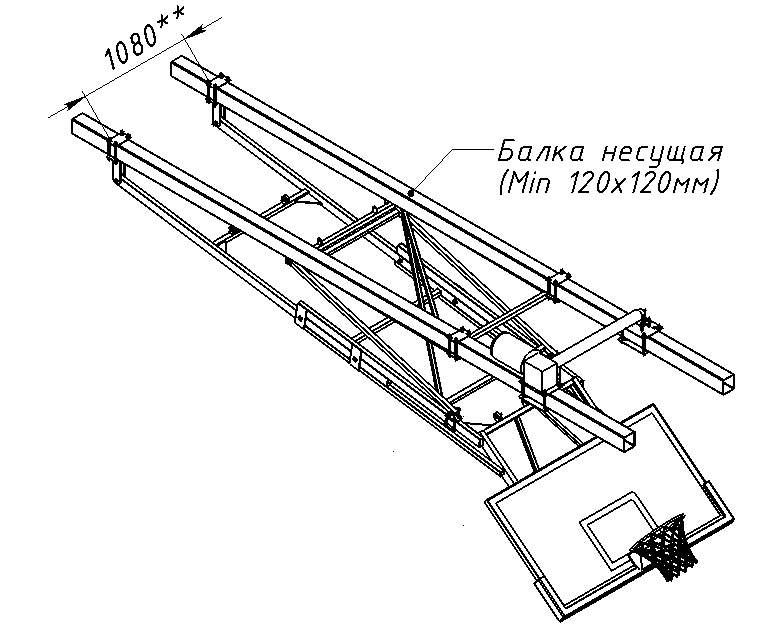 Баскетбольная ферма служит для точного позиционирования баскетбольного щита в пространстве баскетбольной площадки в соответствии с правилами баскетбола.