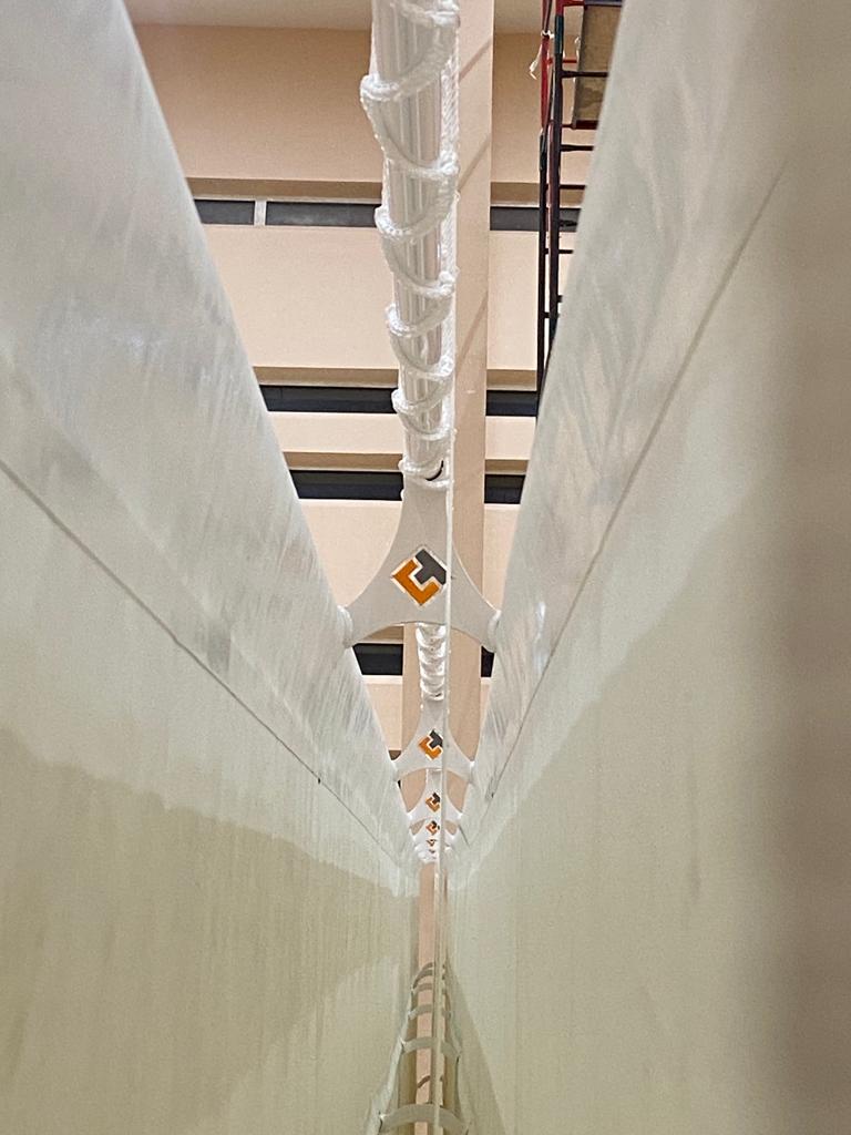 Система деления зала СТ-288 предназначена для разделения спортивного зала на отдельные изолированные площадки и/или сектора. Система деления зала оснащена механизмом подъема разделительного полотна (шторы) вверх к потолку с помощью электрического двигателя (привода) вертикальным подъемом.