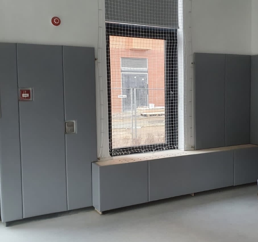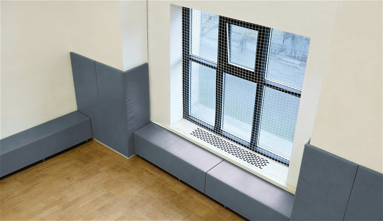 Комплексная защита стен и окон спортзала (стеновой протектор, перфорированный подоконник) СТД-39