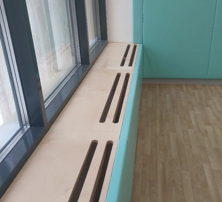 - Перфорированные подоконники: изготавливаются из шлифованной фанеры, толщина 18 мм.