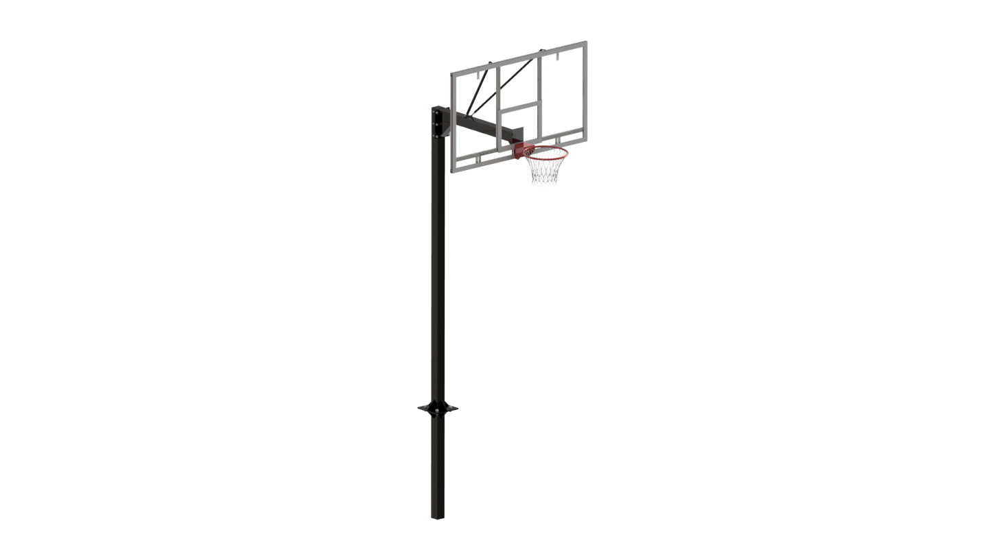 Баскетбольная стойка стационарная, одноопорная, вынос 1,2 м, на болтовом соединении с закладной (щит из поликарбоната 10мм) СТ-205