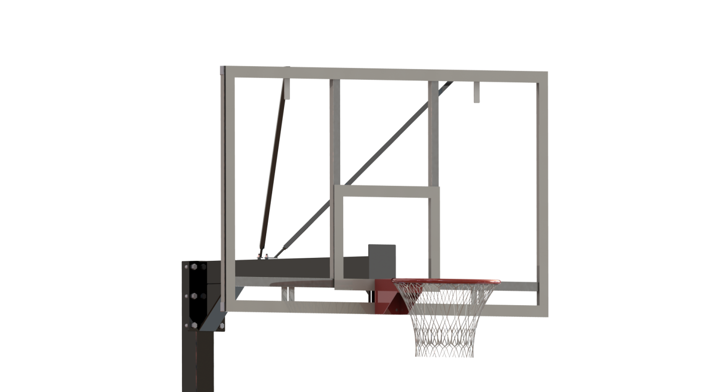 - Баскетбольный щит изготовлен из стальной рамы, которая в свою очередь выполнена из проф. труб 40х25х2 и полос г/к 30х4мм, и листа монолитного поликарбоната 1800х1050 S=10мм.