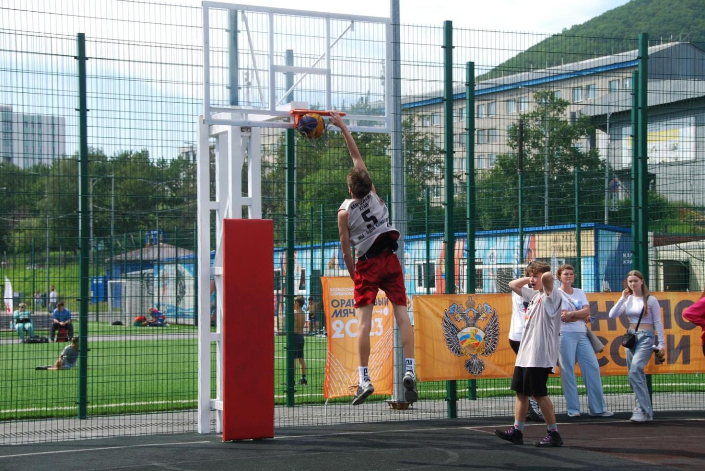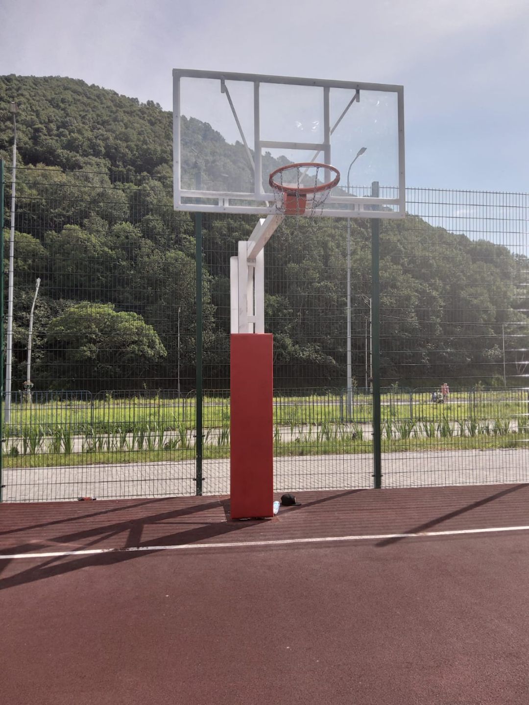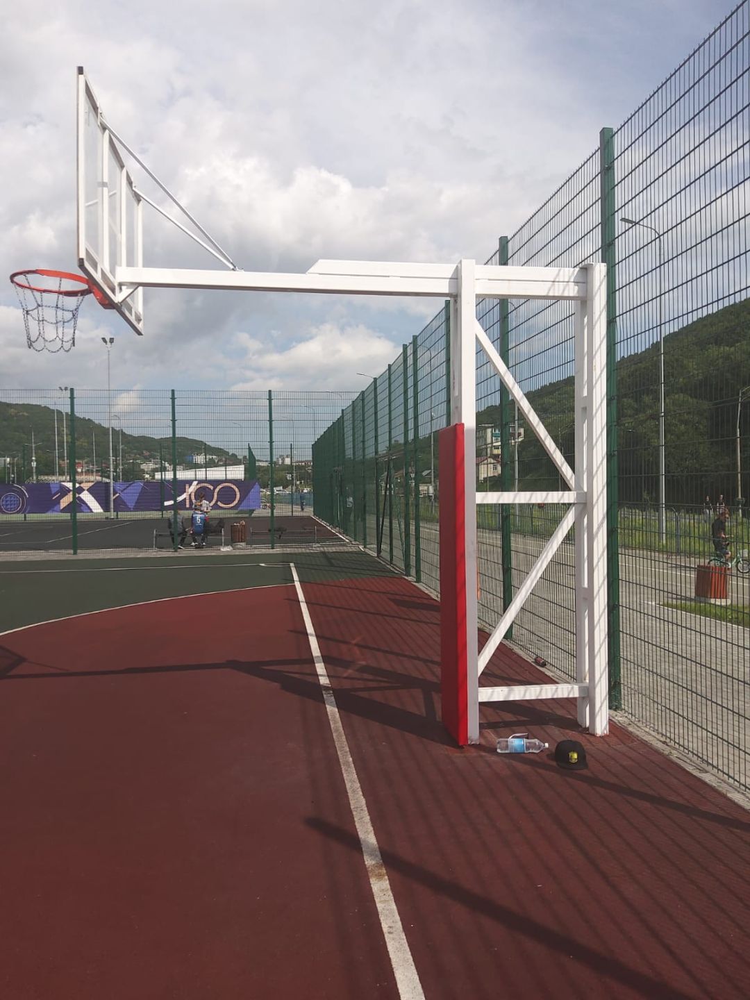 - Безопасность и эргономика: увеличенный вылет щита (2,2 м) минимизирует риск столкновения игрока с опорой стойки при выполнении прыжков и проходов под кольцо.