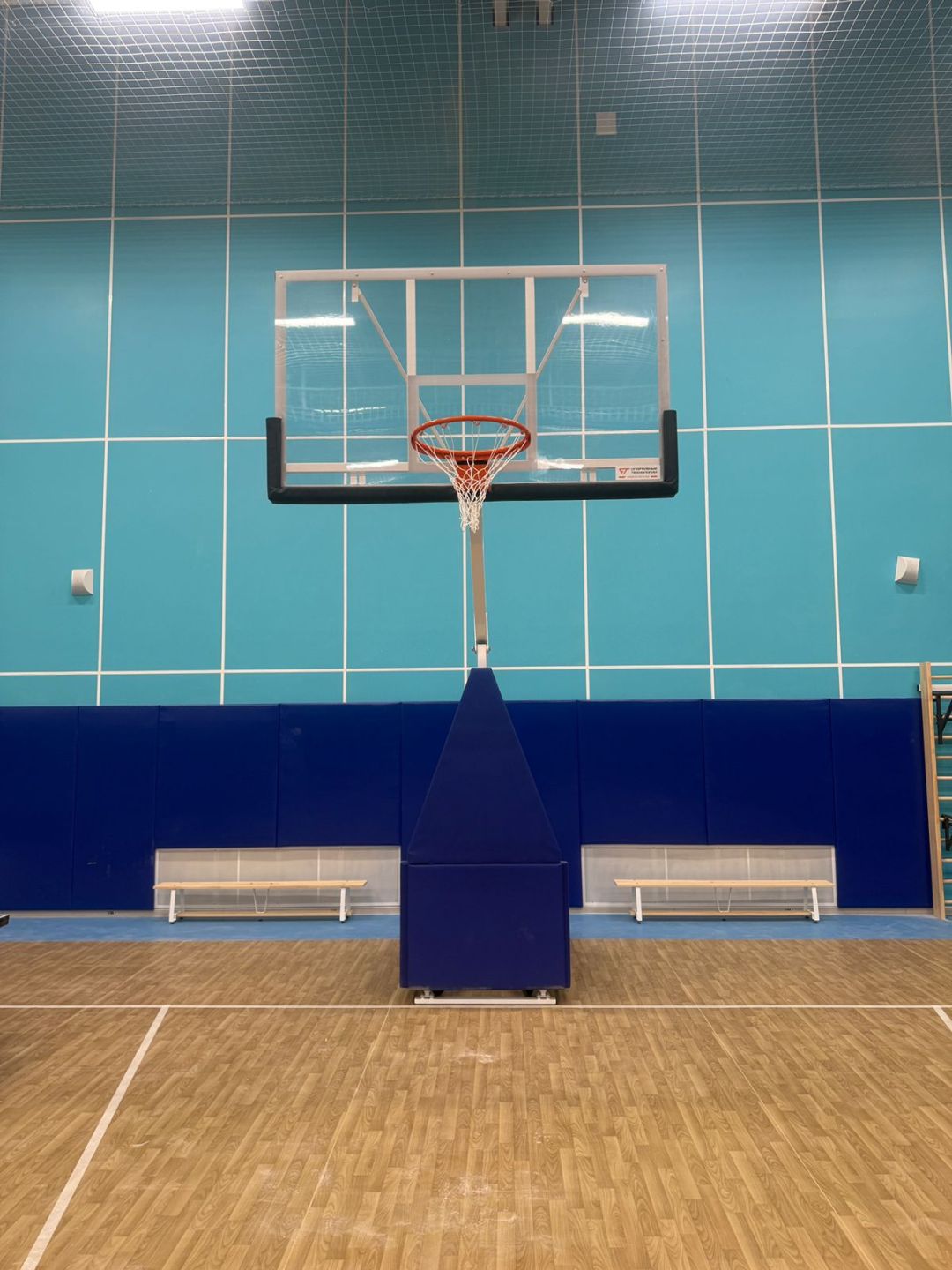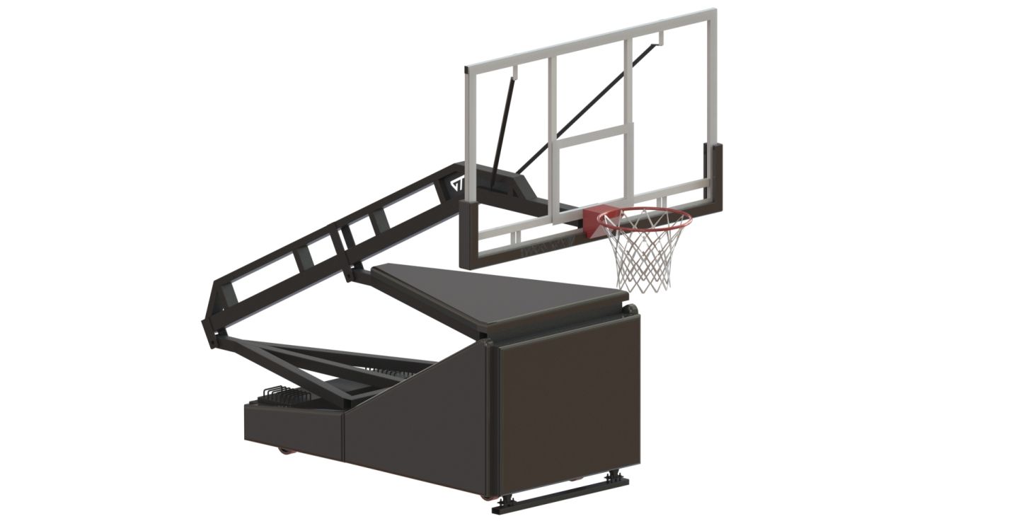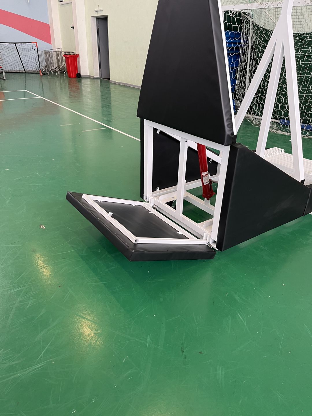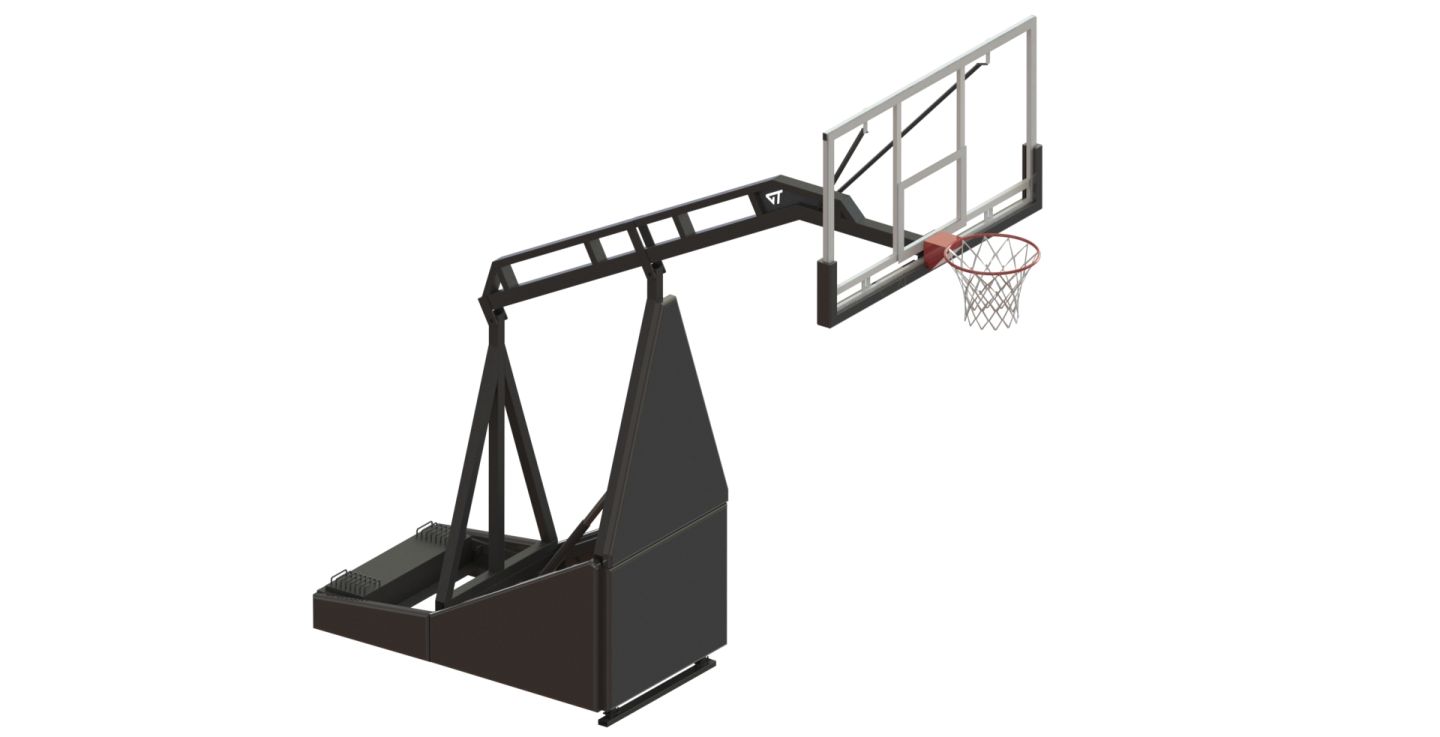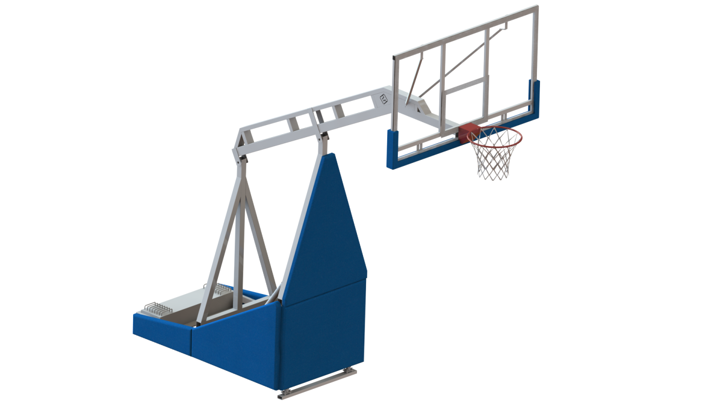 Стойка баскетбольная складная мобильная (далее "стойка") служит для оборудования спортивных помещений разнообразного назначения, используемых для тренировок и соревнований по баскетболу. Для освобождения спортивной площадки для других видов спортивных занятий стойка выполнена складываемой и передвижной.