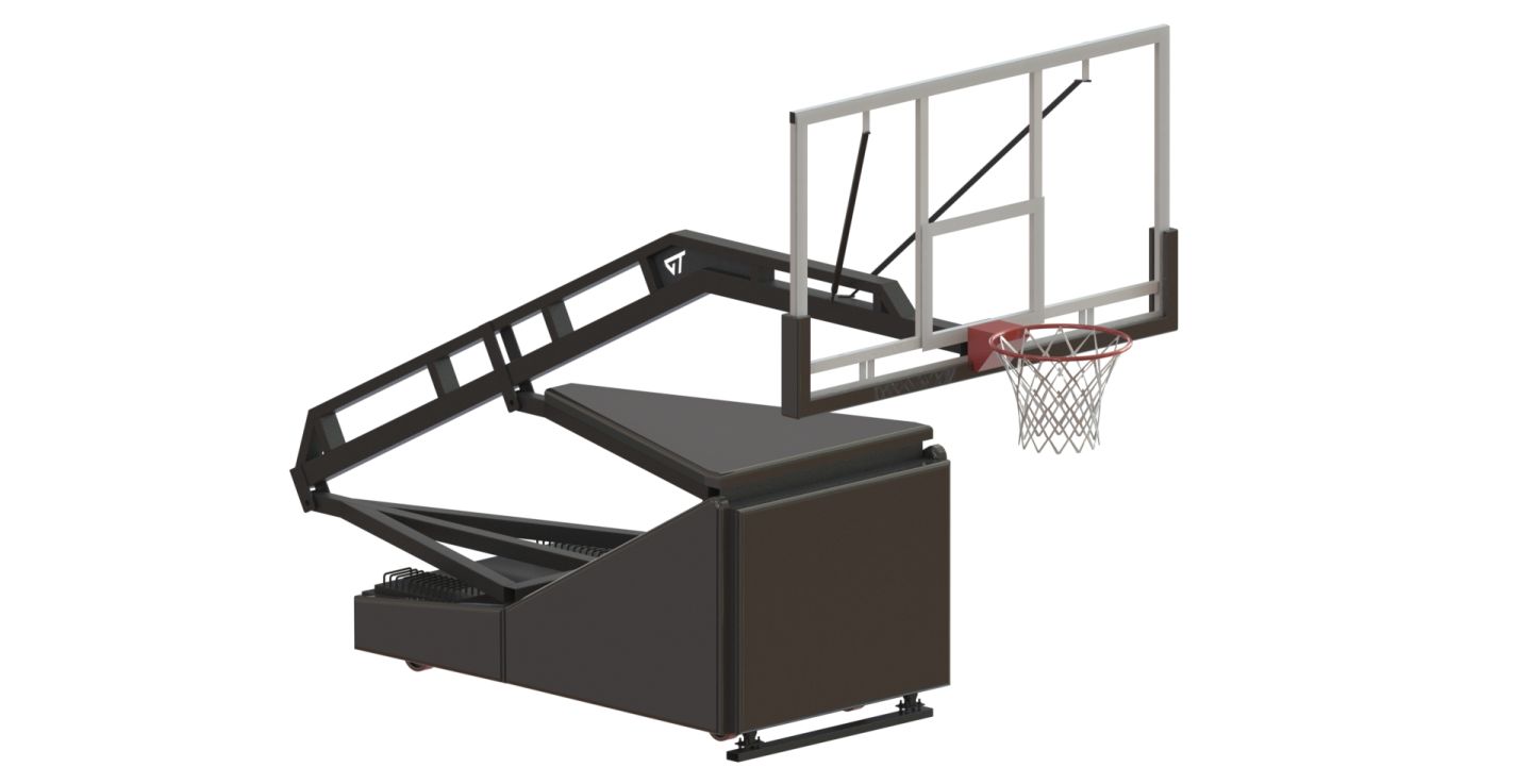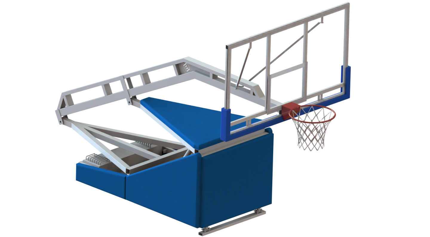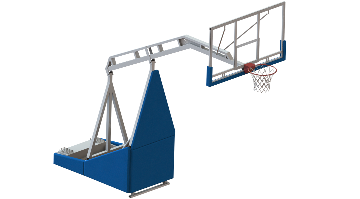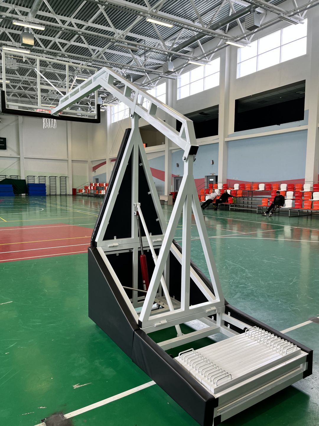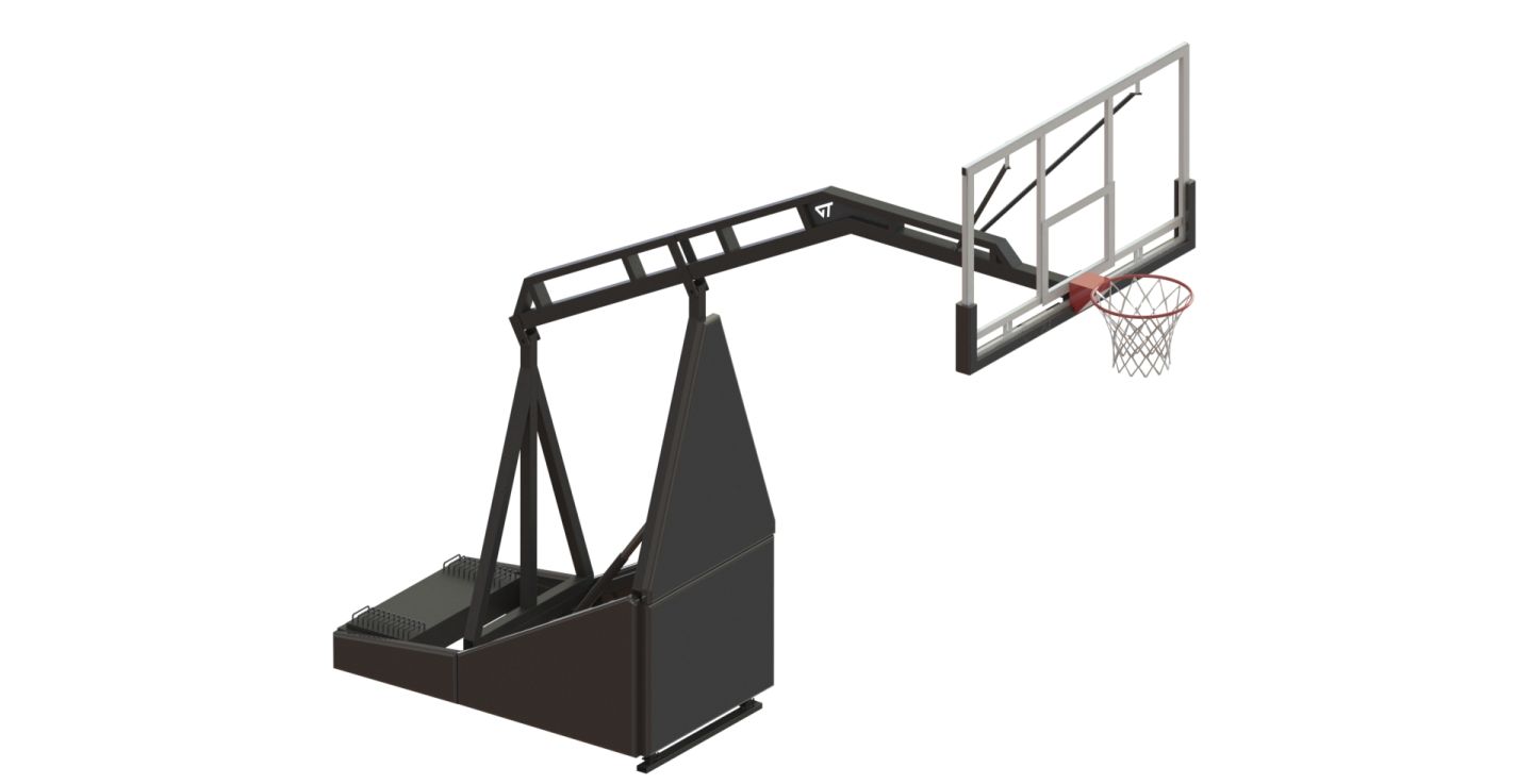 используемых для тренировок и соревнований по баскетболу. Для освобождения спортивной площадки для других видов спортивных занятий стойка выполнена складываемой и передвижной.