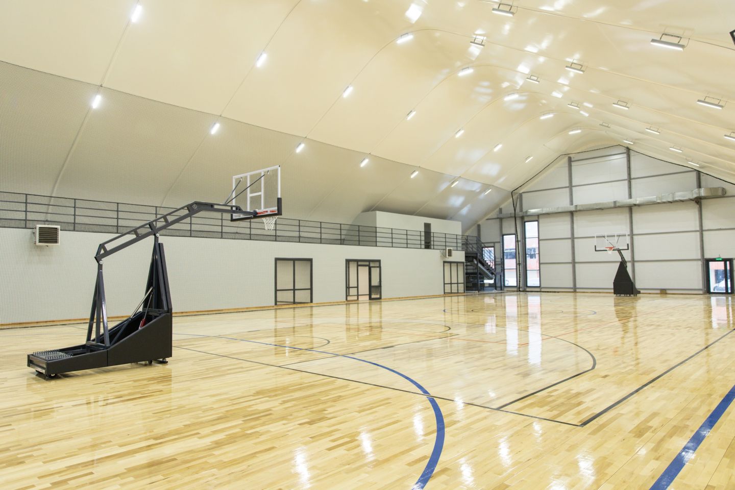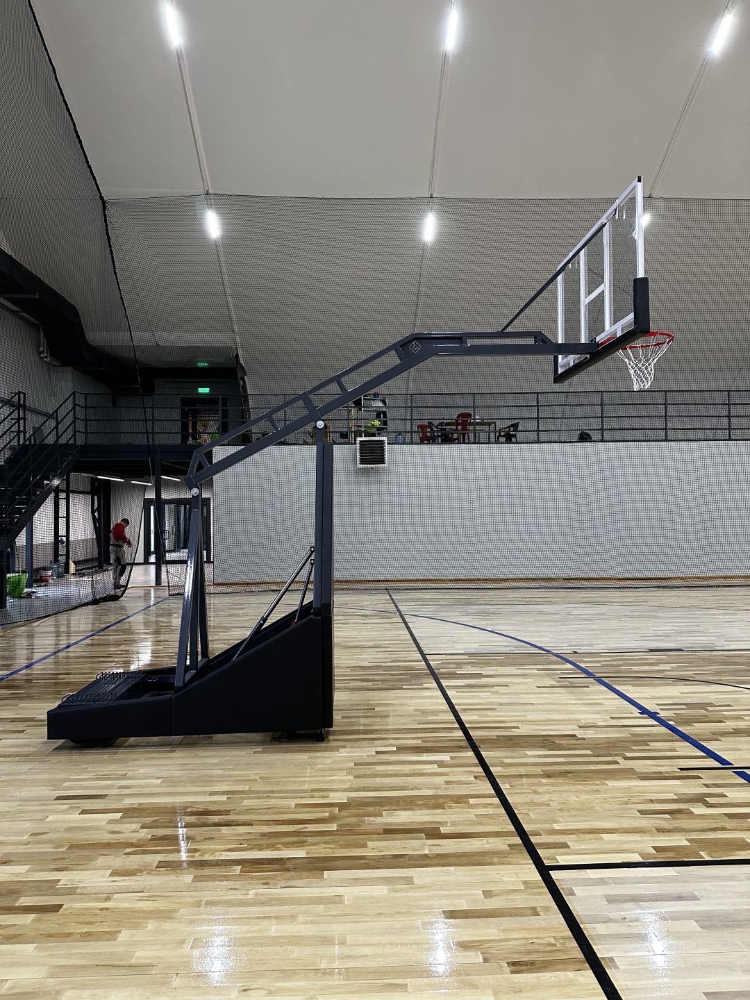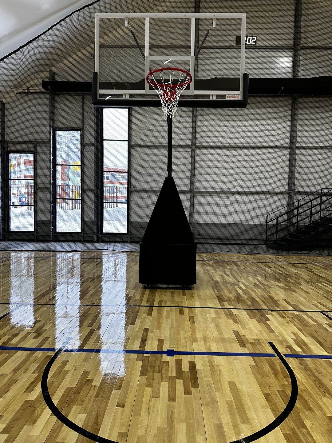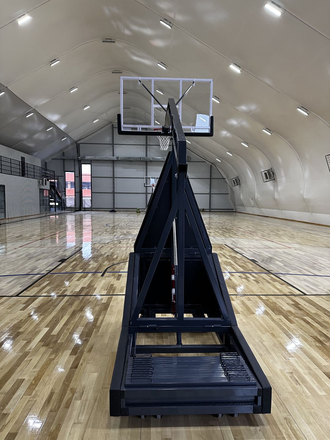 используемых для тренировок и соревнований по баскетболу. Для освобождения спортивной площадки для других видов спортивных занятий стойка выполнена складываемой и передвижной.