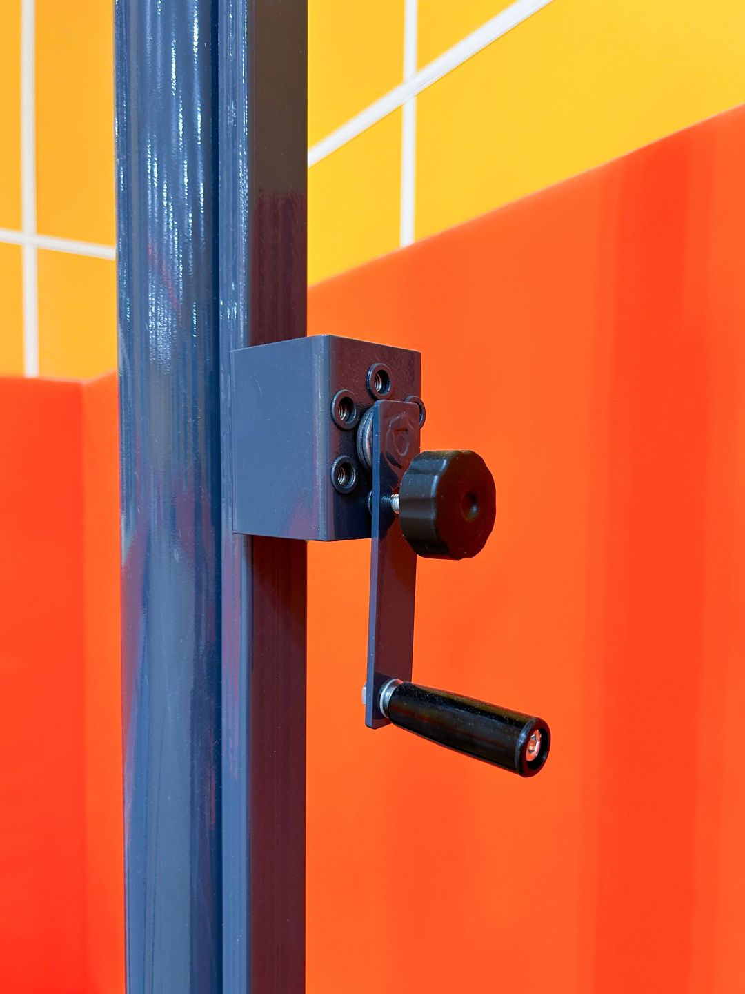 - Левая состоит из основания, мачты и планки (с катушкой-натяжителем и роликом), планка регулируется и крепится к телу мачты резьбовыми фиксаторами.