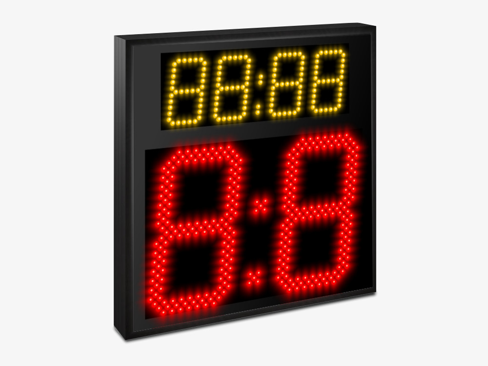 оставшееся время на атаку в секундах [88], при этом последние 5 секунд в секундах и десятых долях секунд [8.8]; игровое время и семафор - сигнал окончания времени атаки |