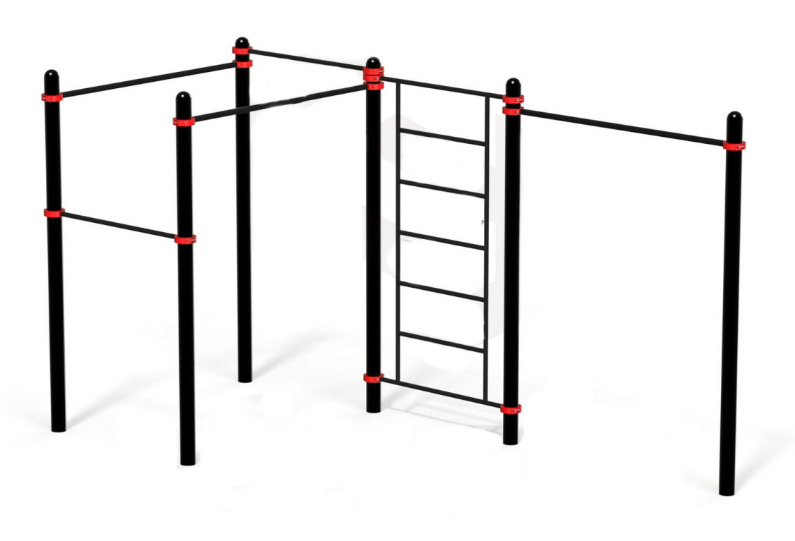 опорные столбы -6 шт; перекладина 1800 мм-2 шт, 1200 мм-2 шт; шведская стенка 2200 мм (высота)-1 шт; крепежи |