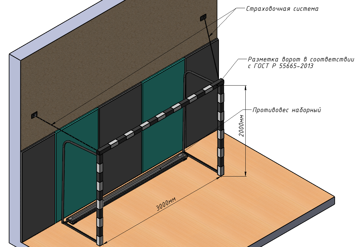 Ворота для мини-футбола/гандбола 3х2х0,6м, разборные (с креплением к стене и противовесом) СТ-464