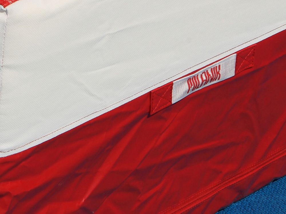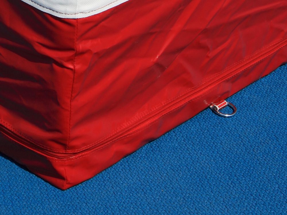 двусторонняя верхняя накладка - сетчатая ткань с устойчивостью к колючкам с обеих сторон; покрытие ПВХ из полиэстера с двумя слоями винила; каждый сегмент имеет ручки из очень прочной жаккардовой ленты, надежно прикрепленной с помощью конвертной строчки, крючки из нержавеющей стали и D-образные кольца крепят верхнюю накладку к зоне приземления; усовершенствованная 3-слойная внутренняя конструкция, изготовлена из высококачественной полиуретановой пены |