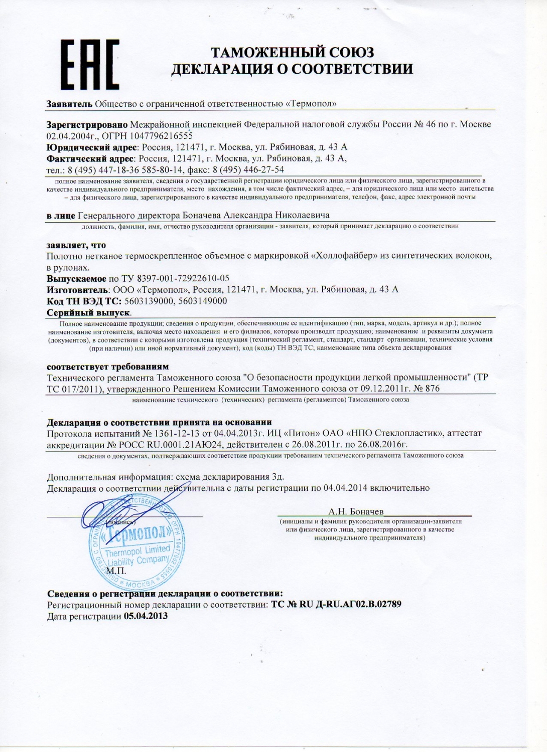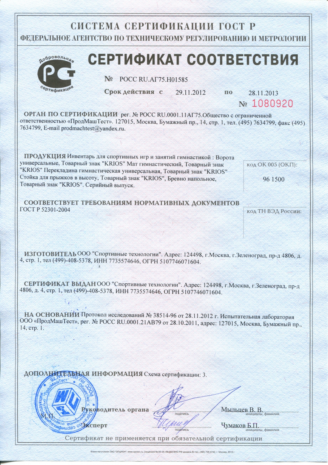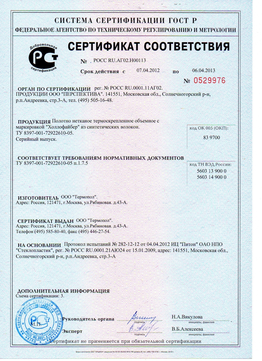 Наша компания является эксклюзивным сублицензиатом торговой марки «Холлофайбер СПОРТ-МАТ». Мы предоставляем Сертификат Соответствия на производимую нами продукцию.