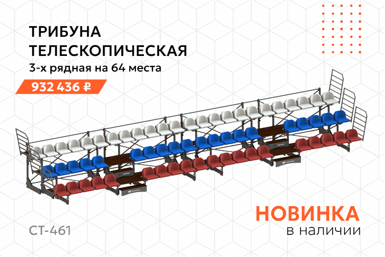 Рады представить вам новинку нашего производства – телескопические трибуны, созданные собственным конструкторским бюро с учётом практического опыта монтажа и эксплуатации многочисленных трибун других производителей.