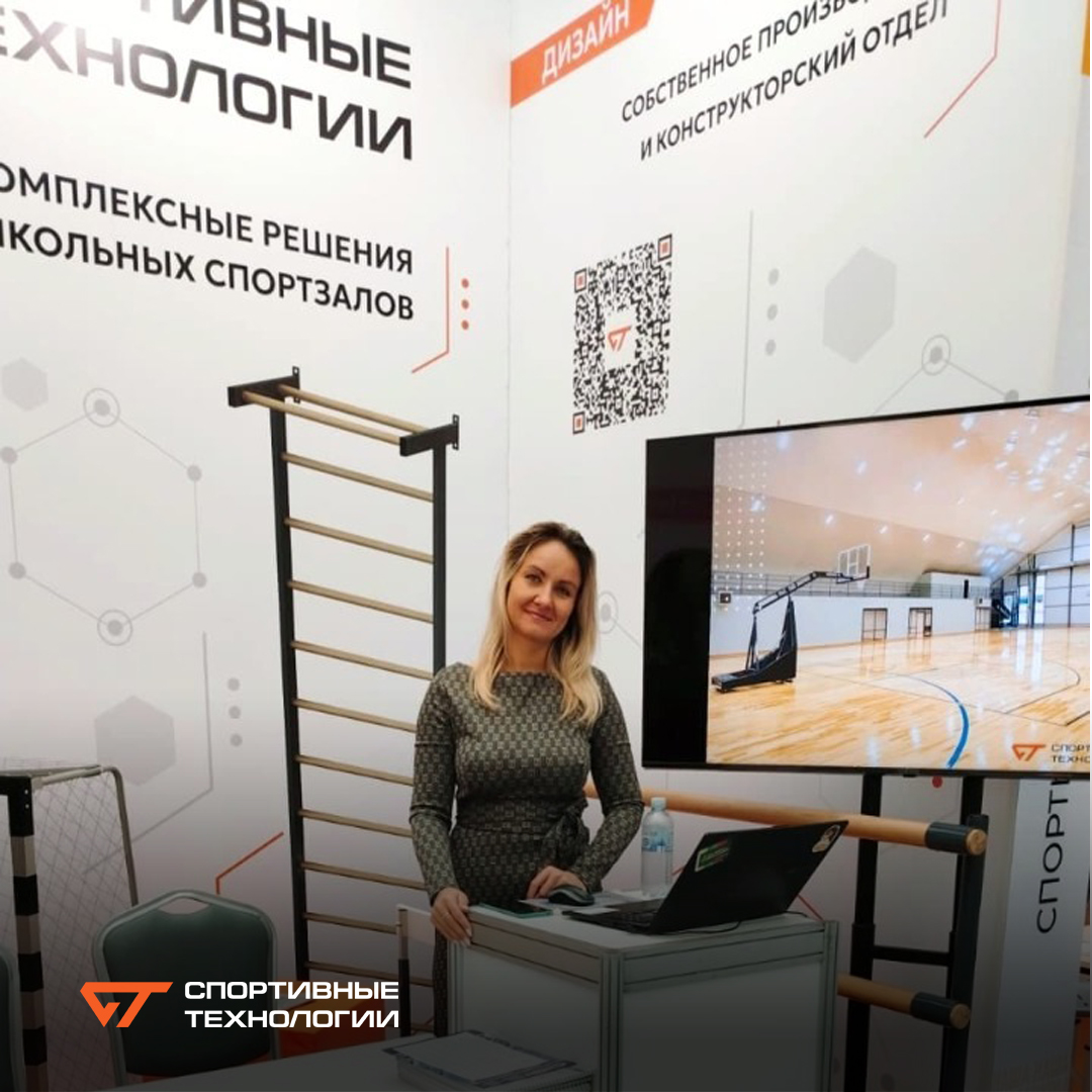 Первая – «Наша школа 2025», выставка про проектирование и дизайн образовательных учреждений. Мы представили решения для школьных спортзалов, где каждый метр имеет значение: складные баскетбольные щиты, мобильные стойки, трансформируемые конструкции. Всё, чтобы спортзал был удобным, безопасным и многофункциональным.